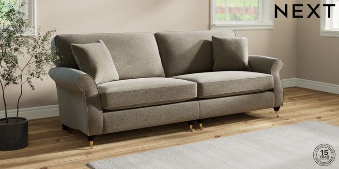 The Ashford sofa range embodies classic country style with its generous proportions and elegant scroll arms. It features ""Firmer Sit"" seat cushions, constructed with a high-density foam core and soft foam toppers. This design provides ultimate support, durability, and shape retention, while also offering a more tailored appearance. These cushions are low-maintenance and will naturally return to their shape when not in use. For extra comfort, we've included scatter cushions filled with a luxurious fibre mix. The seat cushions are also reversible, so we recommend rotating and plumping them regularly to keep them looking their best. Personalise your Ashford sofa by choosing from a vast array of fabric colors and a selection of feet options.