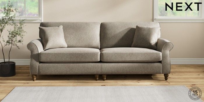 The Ashford sofa range embodies classic country style with its generous proportions and elegant scroll arms. It features ""Firmer Sit"" seat cushions, constructed with a high-density foam core and soft foam toppers. This design provides ultimate support, durability, and shape retention, while also offering a more tailored appearance. These cushions are low-maintenance and will naturally return to their shape when not in use. For extra comfort, we've included scatter cushions filled with a luxurious fibre mix. The seat cushions are also reversible, so we recommend rotating and plumping them regularly to keep them looking their best. Personalise your Ashford sofa by choosing from a vast array of fabric colors and a selection of feet options.