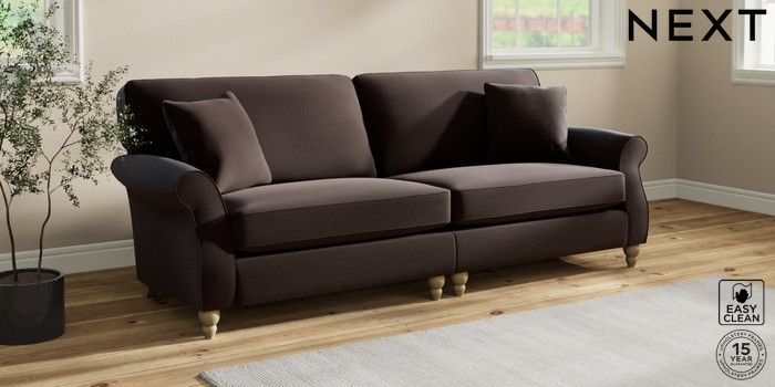 6.12.1 Buy Ashford 4 Seater Sofa Fine Chenille Easy Clean Chocolate Brown Low Turned - Light from the Next UK online shop Click here to use our accessible website