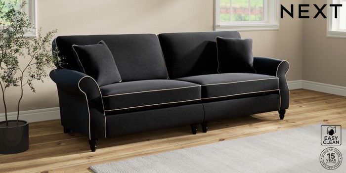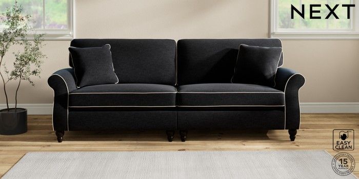 7.3.1 Buy Ashford 4 Seater Sofa Fine Chenille with Contrast Black and Oyster Low Turned - Dark from the Next UK online shop Click here to use our accessible website