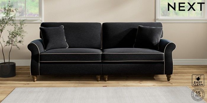 7.3.1 Buy Ashford 4 Seater Sofa Fine Chenille with Contrast Black and Oyster Low Turned - Mid from the Next UK online shop Click here to use our accessible website