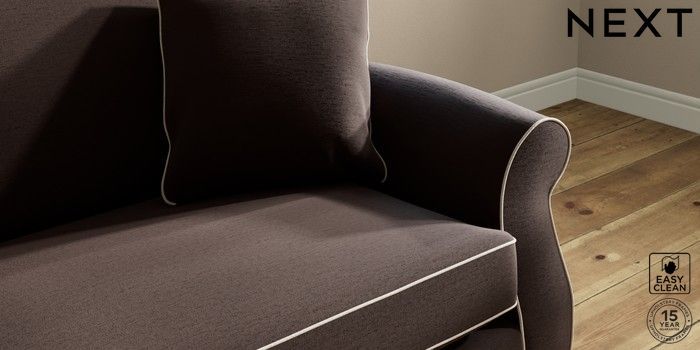 7.3.1 Buy Ashford 4 Seater Sofa Fine Chenille with Contrast Chocolate Brown and Oyster Castor - Dark from the Next UK online shop Click here to use our accessible website