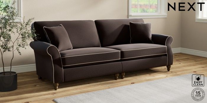 7.3.1 Buy Ashford 4 Seater Sofa Fine Chenille with Contrast Chocolate Brown and Oyster Low Turned - Mid from the Next UK online shop Click here to use our accessible website