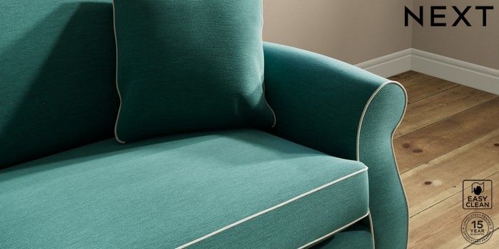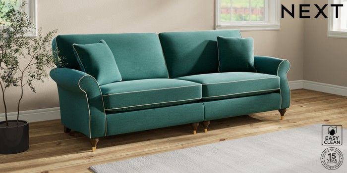 7.3.1 Buy Ashford 4 Seater Sofa Fine Chenille with Contrast Dark Juniper Green and Oyster Modern Turned Metal Cap - Mid from the Next UK online shop Click here to use our accessible website