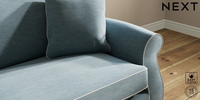 7.3.1 Buy Ashford 4 Seater Sofa Fine Chenille with Contrast Mid Blue and Oyster Castor - Dark from the Next UK online shop Click here to use our accessible website