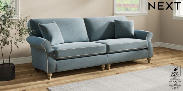 7.3.1 Buy Ashford 4 Seater Sofa Fine Chenille with Contrast Mid Blue and Oyster Low Turned - Light from the Next UK online shop Click here to use our accessible website