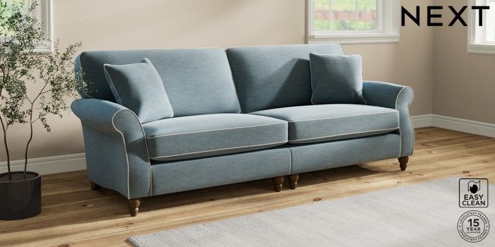 7.3.1 Buy Ashford 4 Seater Sofa Fine Chenille with Contrast Mid Blue and Oyster Low Turned - Mid from the Next UK online shop Click here to use our accessible website