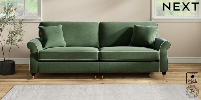 7.3.1 Buy Ashford 4 Seater Sofa Fine Chenille with Contrast Mid Khaki Green and Oyster Castor - Dark from the Next UK online shop Click here to use our accessible website