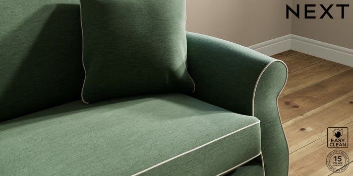 7.3.1 Buy Ashford 4 Seater Sofa Fine Chenille with Contrast Mid Khaki Green and Oyster Low Turned - Dark from the Next UK online shop Click here to use our accessible website