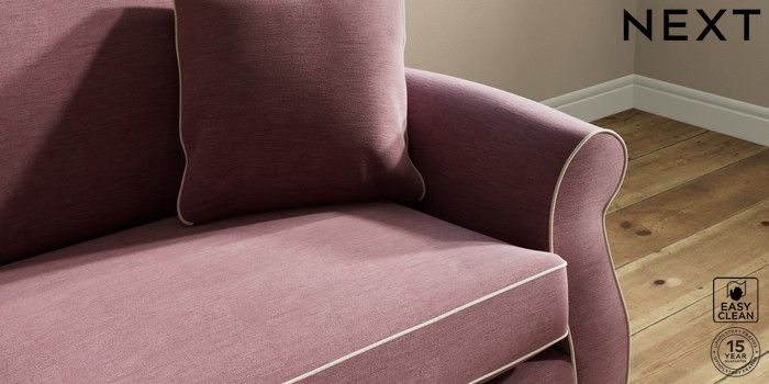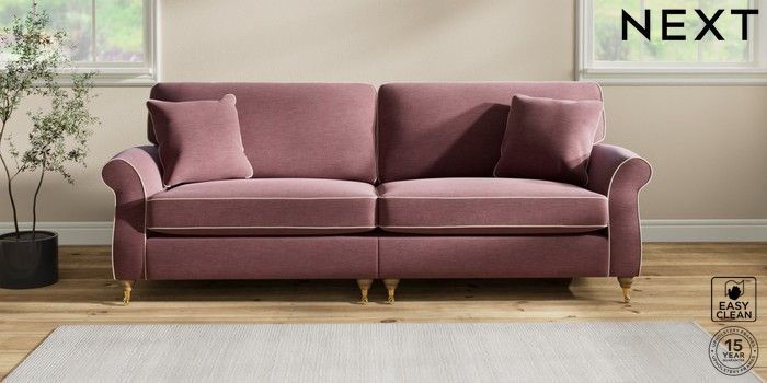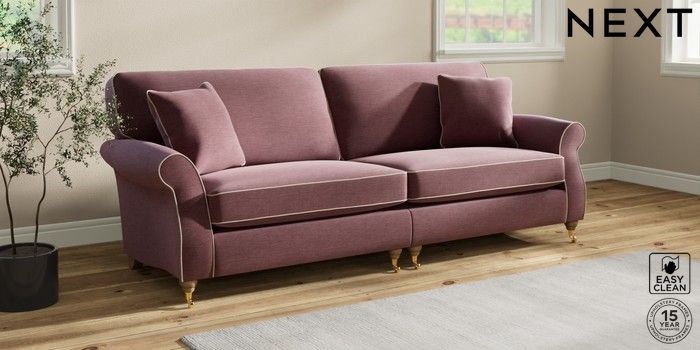 7.3.1 Buy Ashford 4 Seater Sofa Fine Chenille with Contrast Mid Mulberry Purple and Oyster Castor - Light from the Next UK online shop Click here to use our accessible website