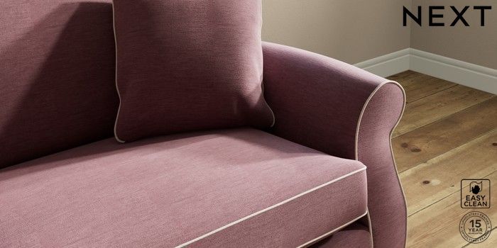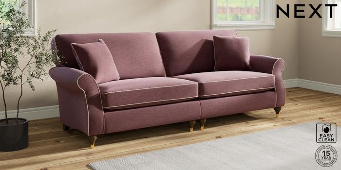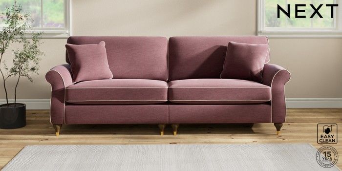 7.3.1 Buy Ashford 4 Seater Sofa Fine Chenille with Contrast Mid Mulberry Purple and Oyster Modern Turned Metal Cap - Mid from the Next UK online shop Click here to use our accessible website