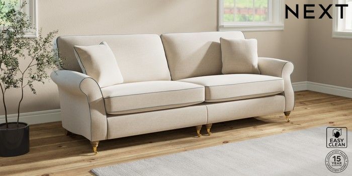 7.3.1 Buy Ashford 4 Seater Sofa Fine Chenille with Contrast Oyster and Mid Blue Castor - Light from the Next UK online shop Click here to use our accessible website