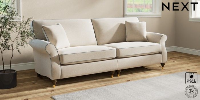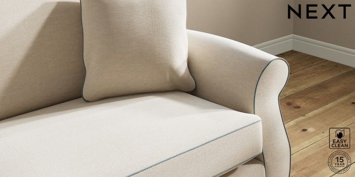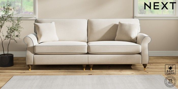 7.3.1 Buy Ashford 4 Seater Sofa Fine Chenille with Contrast Oyster and Mid Blue Modern Turned Metal Cap - Mid from the Next UK online shop Click here to use our accessible website