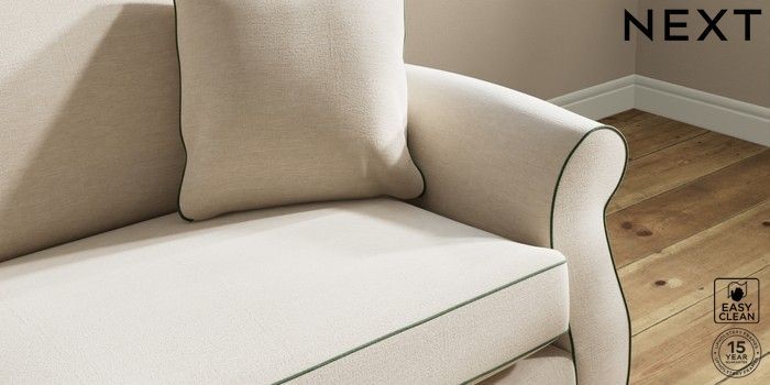 7.3.1 Buy Ashford 4 Seater Sofa Fine Chenille with Contrast Oyster and Mid Khaki Green Modern Turned Metal Cap - Mid from the Next UK online shop Click here to use our accessible website