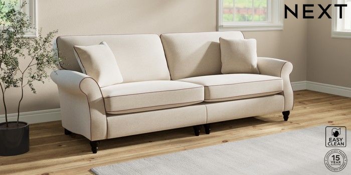 7.3.1 Buy Ashford 4 Seater Sofa Fine Chenille with Contrast Oyster and Mid Mulberry Purple Low Turned - Dark from the Next UK online shop Click here to use our accessible website