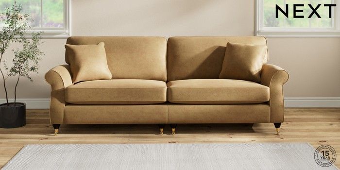6.12.1 Buy Ashford 4 Seater Sofa Luxe Chenille Honey Yellow Castor - Dark from the Next UK online shop Click here to use our accessible website
