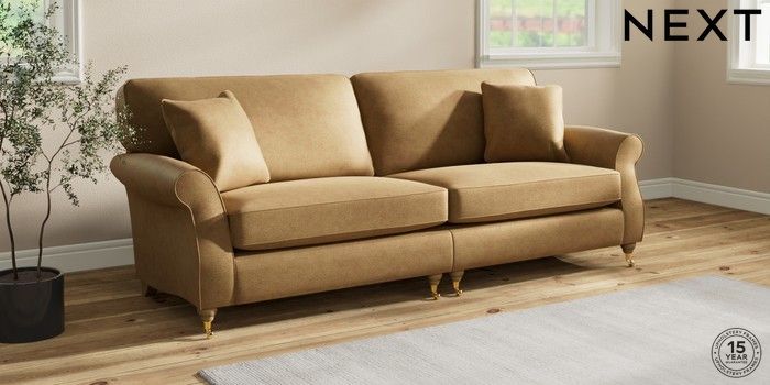 6.12.1 Buy Ashford 4 Seater Sofa Luxe Chenille Honey Yellow Castor - Light from the Next UK online shop Click here to use our accessible website
