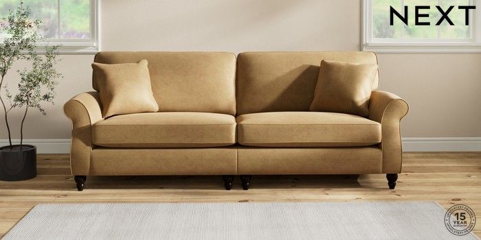 6.12.1 Buy Ashford 4 Seater Sofa Luxe Chenille Honey Yellow Low Turned - Dark from the Next UK online shop Click here to use our accessible website