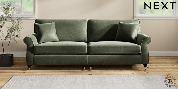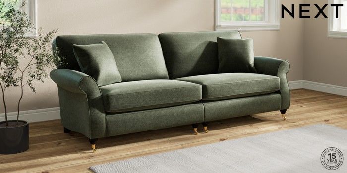6.12.1 Buy Ashford 4 Seater Sofa Luxe Chenille Mid Green Castor - Dark from the Next UK online shop Click here to use our accessible website