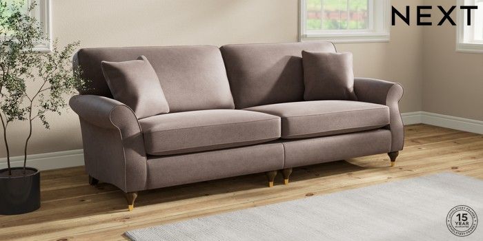 6.12.1 Buy Ashford 4 Seater Sofa Luxe Chenille Mink Brown Modern Turned Metal Cap - Mid from the Next UK online shop Click here to use our accessible website