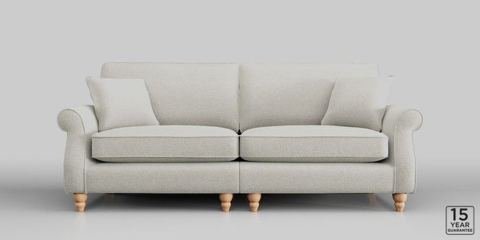 The Ashford sofa range embodies classic country style with its generous proportions and elegant scroll arms. It features ""Firmer Sit"" seat cushions, constructed with a high-density foam core and soft foam toppers. This design provides ultimate support, durability, and shape retention, while also offering a more tailored appearance. These cushions are low-maintenance and will naturally return to their shape when not in use. For extra comfort, we've included scatter cushions filled with a luxurious fibre mix. The seat cushions are also reversible, so we recommend rotating and plumping them regularly to keep them looking their best. Personalise your Ashford sofa by choosing from a vast array of fabric colors and a selection of feet options.