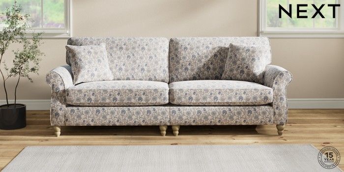 7.3.1 Buy Ashford 4 Seater Sofa Relaxed Linen Look Print Woodblock Floral Blue Low Turned - Light from the Next UK online shop Click here to use our accessible website