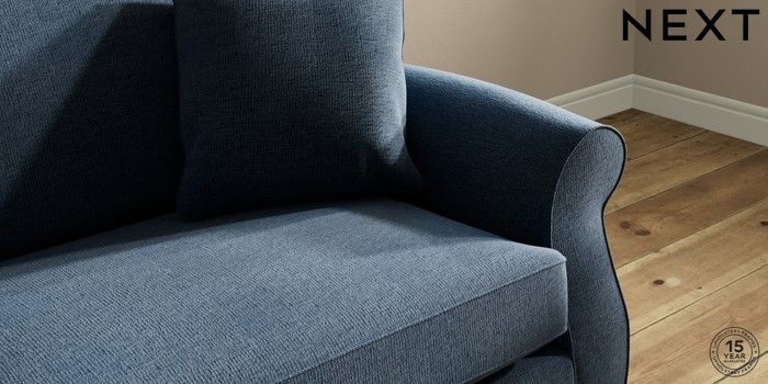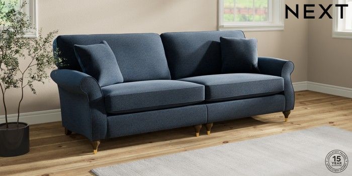 6.12.1 Buy Ashford 4 Seater Sofa Ripple Chenille Dark Blue Modern Turned Metal Cap - Mid from the Next UK online shop Click here to use our accessible website