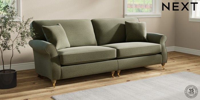 6.12.1 Buy Ashford 4 Seater Sofa Ripple Chenille Mid Moss Green Castor - Light from the Next UK online shop Click here to use our accessible website