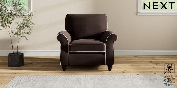 7.3.1 Buy Ashford Armchair Fine Chenille with Contrast Chocolate Brown and Oyster Low Turned - Dark from the Next UK online shop Click here to use our accessible website
