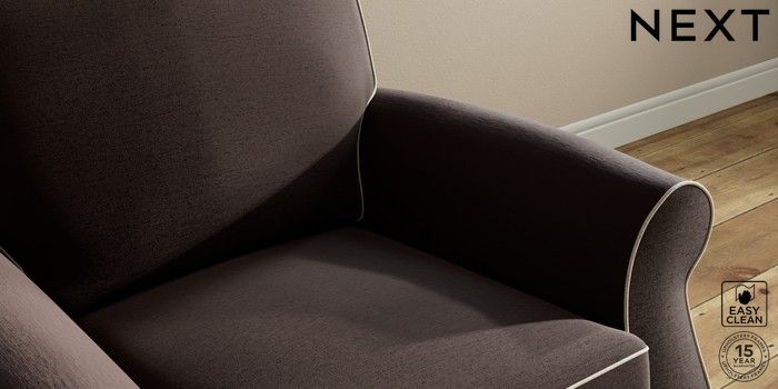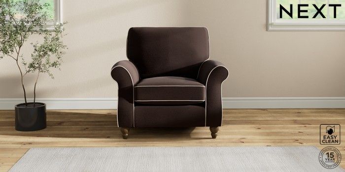 7.3.1 Buy Ashford Armchair Fine Chenille with Contrast Chocolate Brown and Oyster Low Turned - Mid from the Next UK online shop Click here to use our accessible website