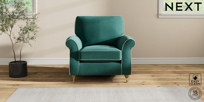 7.3.1 Buy Ashford Armchair Fine Chenille with Contrast Dark Juniper Green and Oyster Castor - Light from the Next UK online shop Click here to use our accessible website