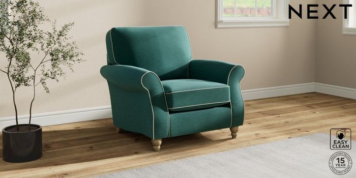 7.3.1 Buy Ashford Armchair Fine Chenille with Contrast Dark Juniper Green and Oyster Low Turned - Light from the Next UK online shop Click here to use our accessible website