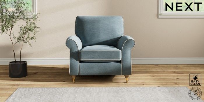 7.3.1 Buy Ashford Armchair Fine Chenille with Contrast Mid Blue and Oyster Castor - Light from the Next UK online shop Click here to use our accessible website