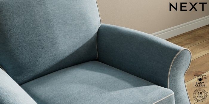 7.3.1 Buy Ashford Armchair Fine Chenille with Contrast Mid Blue and Oyster Low Turned - Mid from the Next UK online shop Click here to use our accessible website