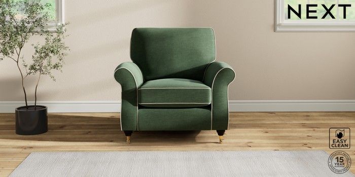 7.3.1 Buy Ashford Armchair Fine Chenille with Contrast Mid Khaki Green and Oyster Castor - Dark from the Next UK online shop Click here to use our accessible website