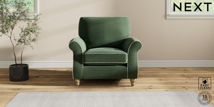 7.3.1 Buy Ashford Armchair Fine Chenille with Contrast Mid Khaki Green and Oyster Low Turned - Light from the Next UK online shop Click here to use our accessible website