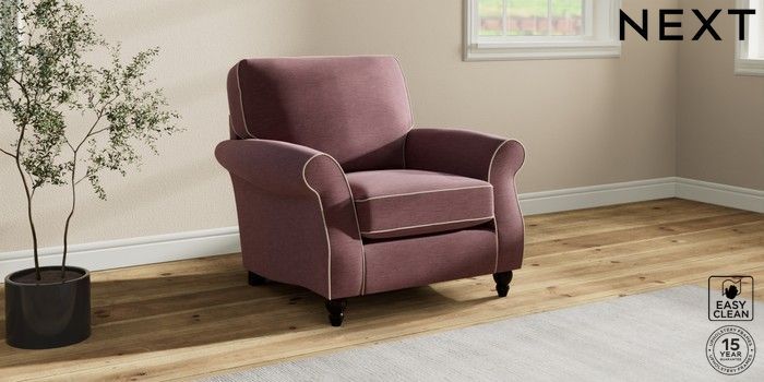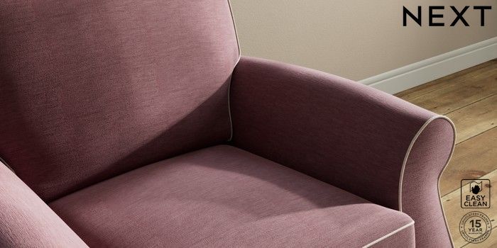 7.3.1 Buy Ashford Armchair Fine Chenille with Contrast Mid Mulberry Purple and Oyster Low Turned - Dark from the Next UK online shop Click here to use our accessible website