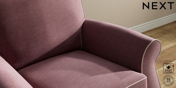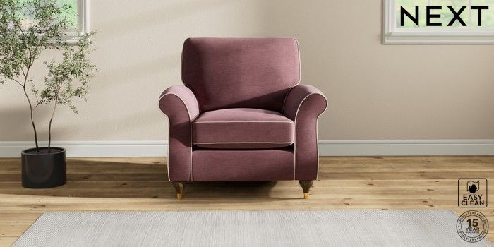 7.3.1 Buy Ashford Armchair Fine Chenille with Contrast Mid Mulberry Purple and Oyster Modern Turned Metal Cap - Mid from the Next UK online shop
