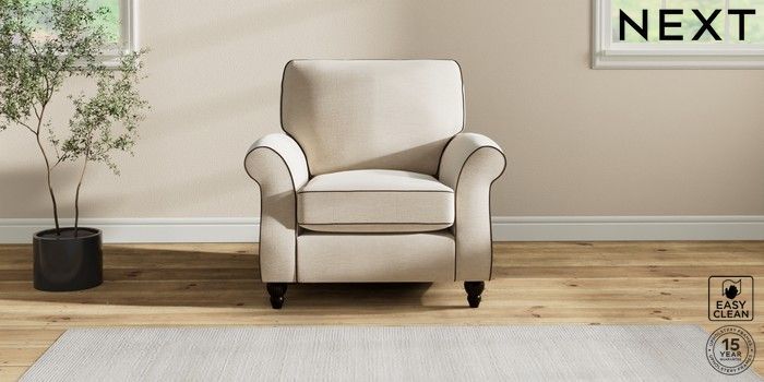 7.3.1 Buy Ashford Armchair Fine Chenille with Contrast Oyster and Chocolate Brown Low Turned - Dark from the Next UK online shop Click here to use our accessible website