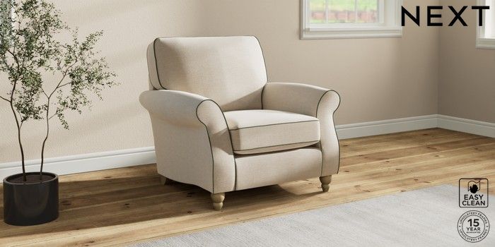 7.3.1 Buy Ashford Armchair Fine Chenille with Contrast Oyster and Mid Khaki Green Low Turned - Light from the Next UK online shop Click here to use our accessible website