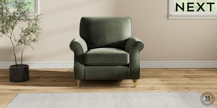 6.12.1 Buy Ashford Armchair Luxe Chenille Mid Green Castor - Light from the Next UK online shop Click here to use our accessible website