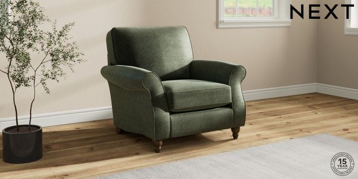 6.12.1 Buy Ashford Armchair Luxe Chenille Mid Green Low Turned - Mid from the Next UK online shop Click here to use our accessible website