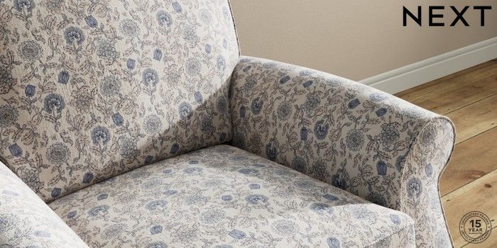 7.3.1 Buy Ashford Armchair Relaxed Linen Look Print Woodblock Floral Blue Low Turned - Dark from the Next UK online shop Click here to use our accessible website