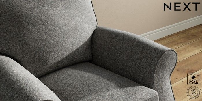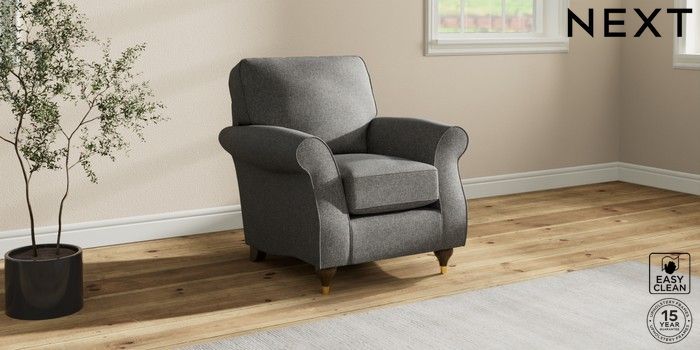 6.12.1 Buy Ashford Small Armchair Tweedy Blend Easy Clean Dark Grey Modern Turned Metal Cap - Mid from the Next UK online shop Click here to use our accessible website