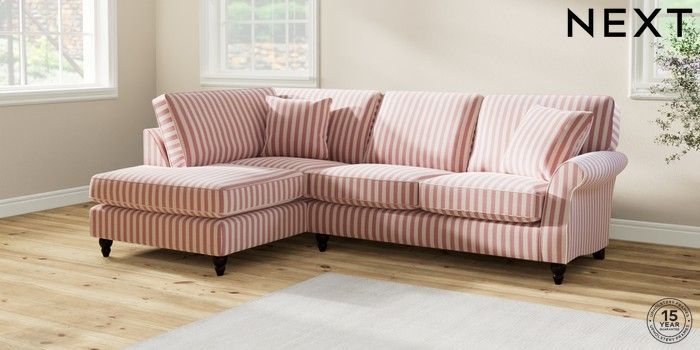 7.2.6 Buy Ashford Medium Corner Chaise - Left Hand Bold Chenille Stripe Dark Pink Low Turned - Dark from the Next UK online shop Click here to use our accessible website