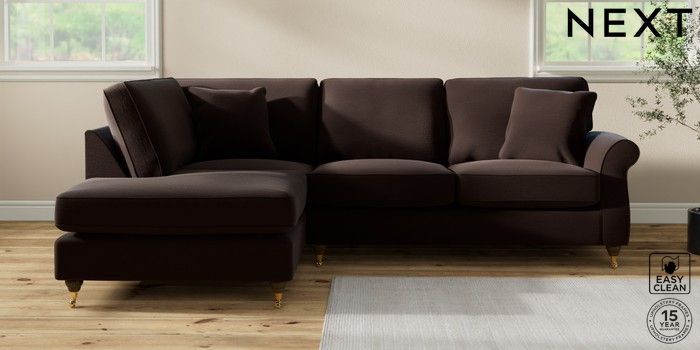 6.12.1 Buy Ashford Medium Corner Chaise - Left Hand Fine Chenille Easy Clean Chocolate Brown Castor - Mid from the Next UK online shop Click here to use our accessible website