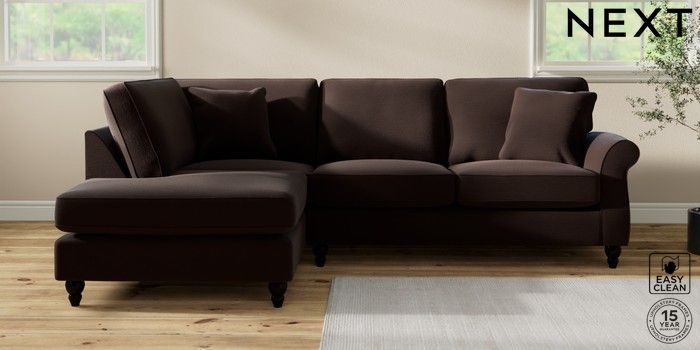 6.12.1 Buy Ashford Medium Corner Chaise - Left Hand Fine Chenille Easy Clean Chocolate Brown Low Turned - Dark from the Next UK online shop Click here to use our accessible website