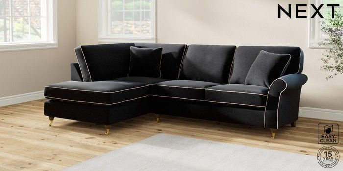 7.3.1 Buy Ashford Medium Corner Chaise - Left Hand Fine Chenille with Contrast Black and Oyster Castor - Mid from the Next UK online shop Click here to use our accessible website