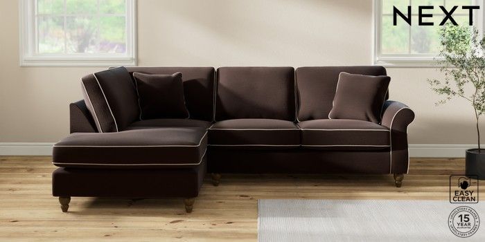 7.3.1 Buy Ashford Medium Corner Chaise - Left Hand Fine Chenille with Contrast Chocolate Brown and Oyster Low Turned - Mid from the Next UK online shop Click here to use our accessible website