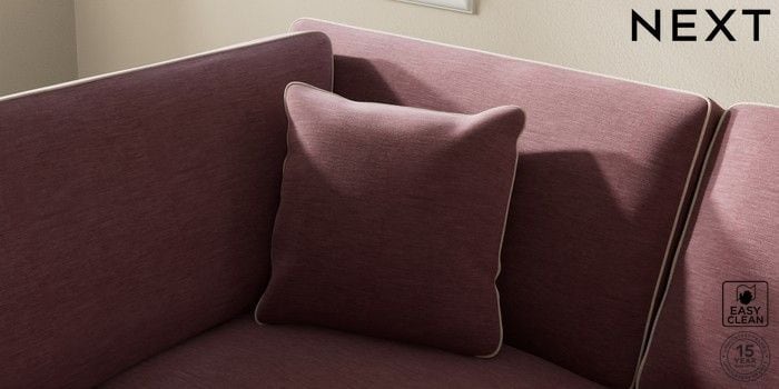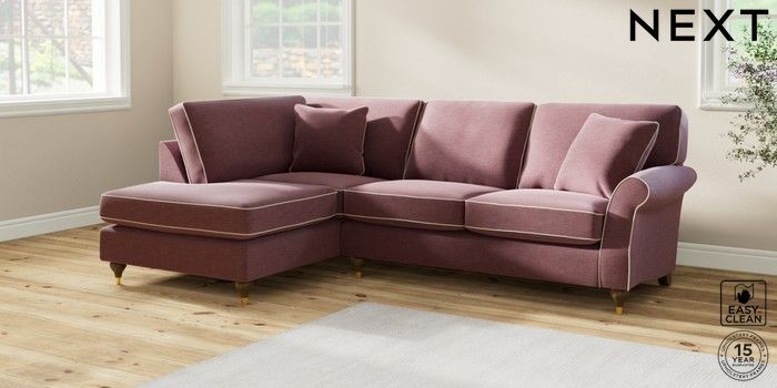 7.3.1 Buy Ashford Medium Corner Chaise - Left Hand Fine Chenille with Contrast Mid Mulberry Purple and Oyster Modern Turned Metal Cap - Mid from the Next UK online shop Click here to use our accessible website